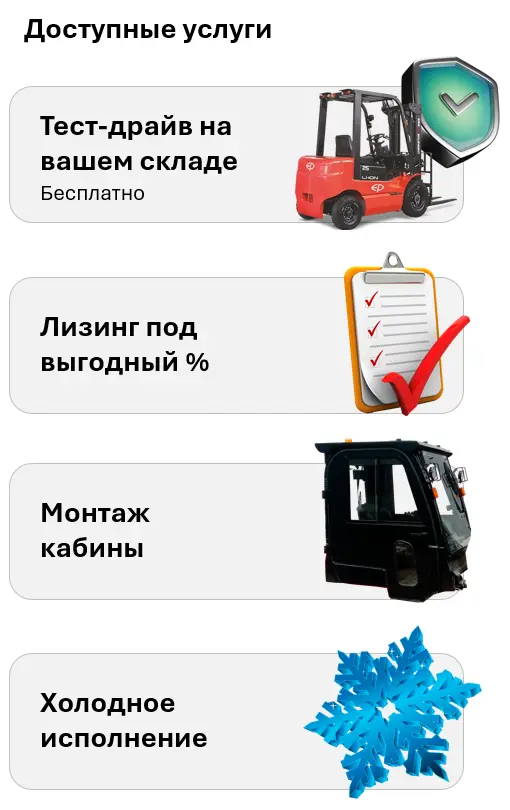 Купить вилочные автопогрузчики EP-equipment у официального дилера с бесплатной доставкой. Мы предлагаем широкий ассортимент качественных дизельных и газовых погрузчиков EP-equipment, доступных для покупки. Являясь официальным дистрибьютором, мы предоставляем гарантию от производителя и обеспечиваем профессиональное обслуживание.